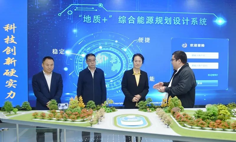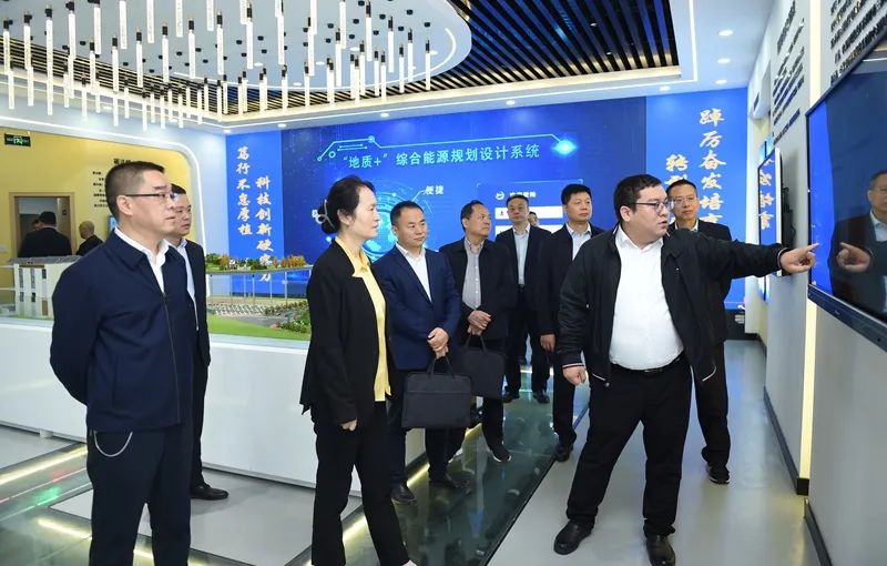 张向阳一行首先深入泾阳产业新城临空科创园,调研陕西地矿集团浅层地温能投资开发示范项目。张向阳详细了解了项目投资、实施情况,资源储量分布以及项目开发前景等,肯定了地矿集团在浅层地温能资源调查、评价和开发利用工作方面的积极探索及取得的成效。