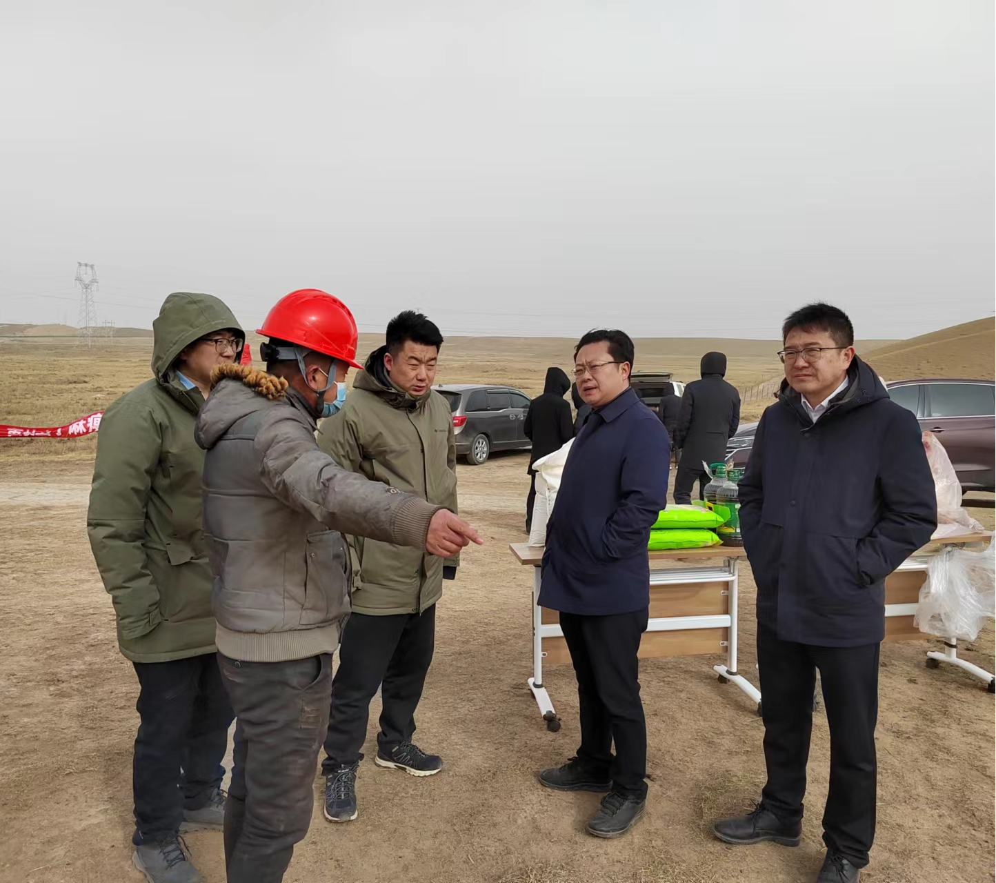 项目现场九0八公司地质勘探院副院长邢高哲对项目进展情况进行详细汇报,陕青海陕煤新能源科技有限公司董事长祝文军及相关领导对九0八公司工作给予较高肯定,详细询问野外人员健康情况、生活情况和存在的困难,嘱咐一线野外人员保重身体、注意防寒保暖和工作安全,并希望九0八公司在后期工作中能继续保持优良的工作状态,再接再厉做到更好,真诚协作,开拓进取的共赢氛围!