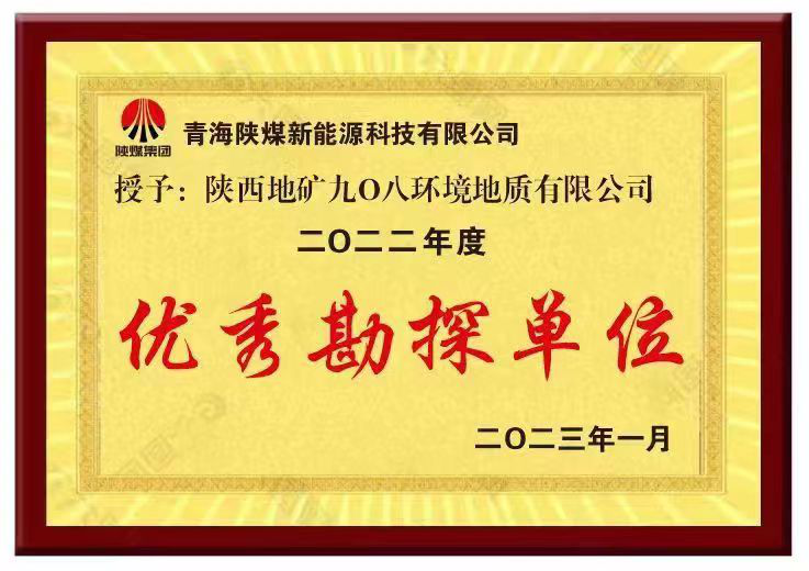 在极不平凡的2022年度,面对青海地区的严重疫情冲击,九0八公司地质勘探院全体职工克服各种困难,深耕青海市场,以优良的专业素养服务业主单位。陕煤集团青海新能源科技有限公司对九0八公司2022年度工作予以充分肯定,特此对九0八公司优秀勘探单位予以表彰。