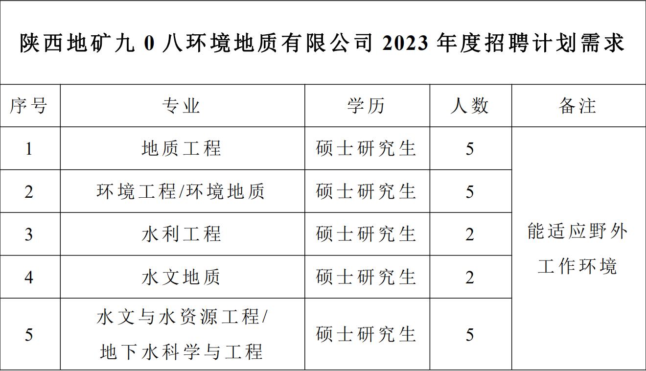 陕西地矿九0八环境地质有限公司2023年招聘简介
