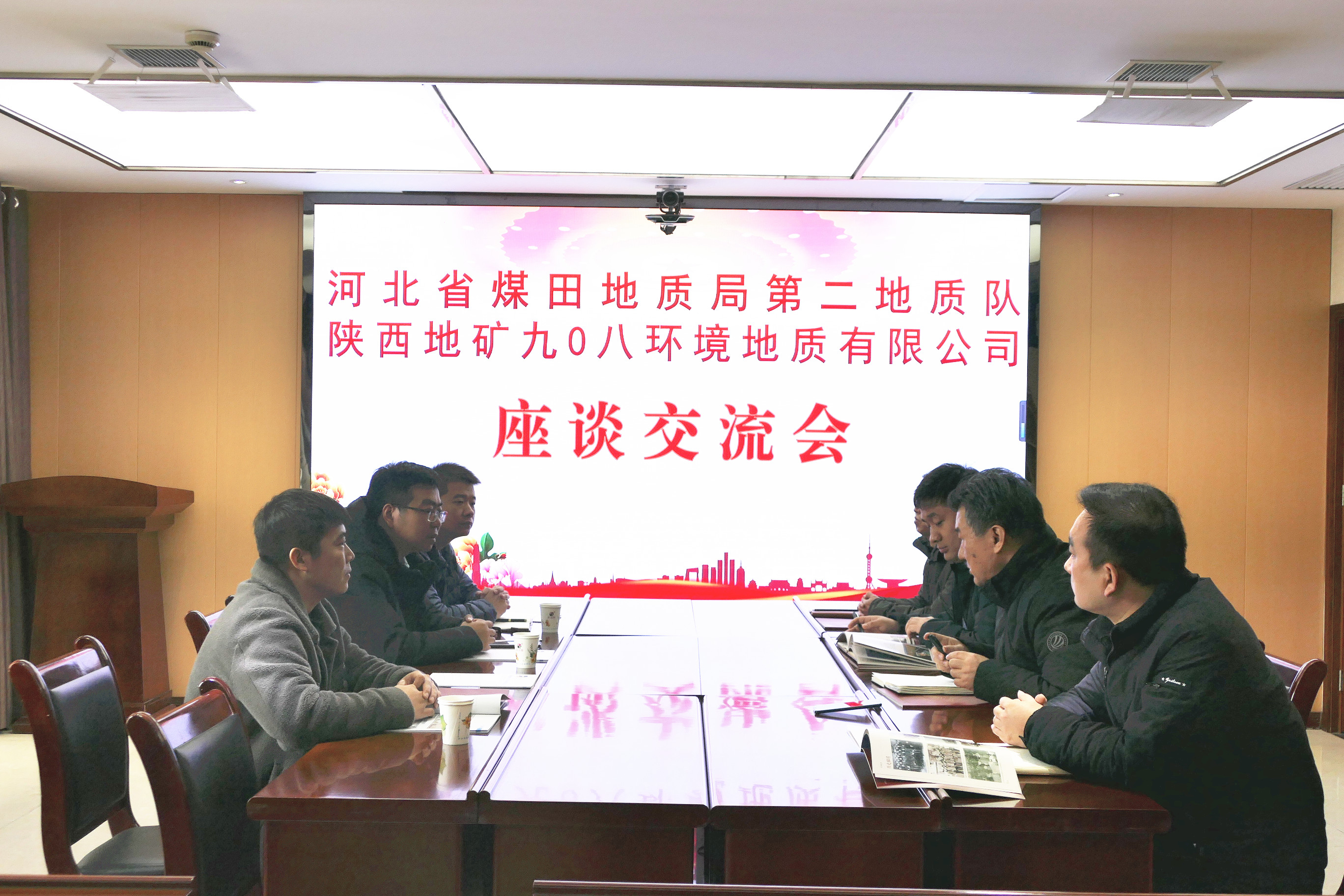 2月10日上午,河北煤田地质局第二地质队副队长高亮一行到陕西地矿九0八交流座谈,公司总工程师畅俊斌,副总工程师井延泉和相关部门负责人参加座谈,副总经理沈春强主持交流座谈会。