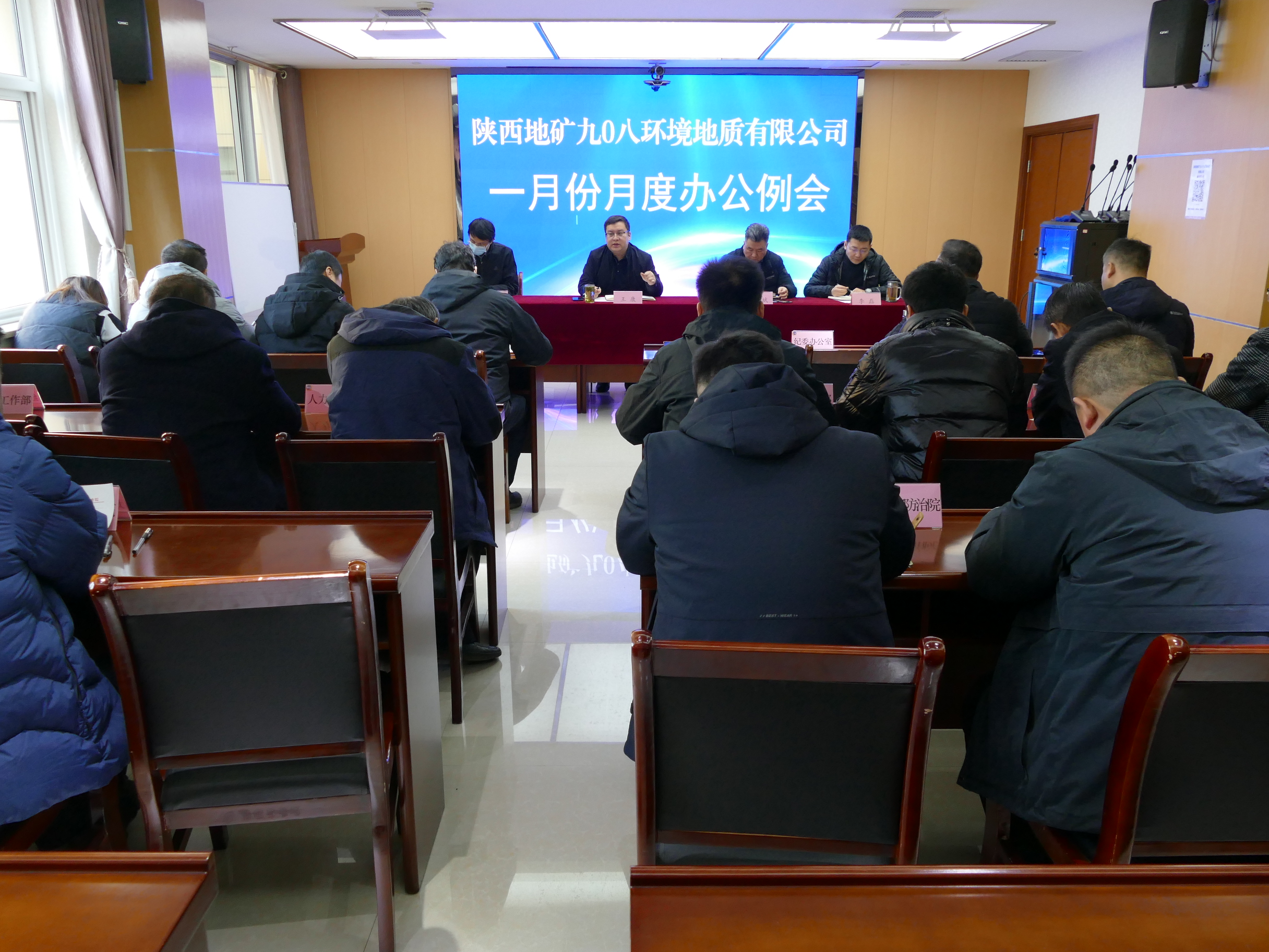 1月8日上午,九0八公司召开月度办公例会,传达学习集团公司2024年1月份工作例会精神,党委书记、执行董事、总经理王康主持会议并讲话,公司领导畅俊斌、王俊杰、李磊出席会议。
