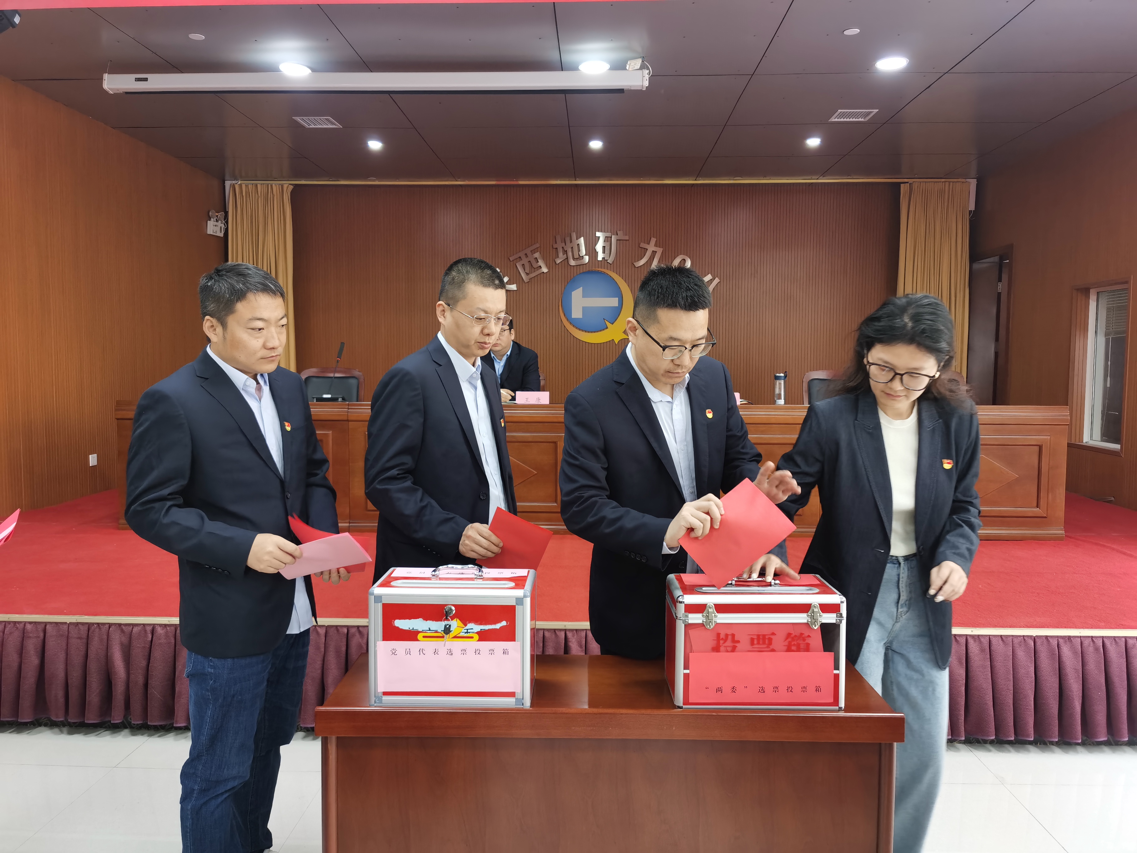 上午8点30分,大会在庄严的国歌声中拉开序幕。会上,与会党员一致通过了《中共陕西地矿九0八环境地质有限公司第二次党员大会选举办法(草案)》,监票人、计票人名单,以及出席陕西地矿集团第二次党员代表候选人名单和补选“两委”委员候选人名单,并进行选举。