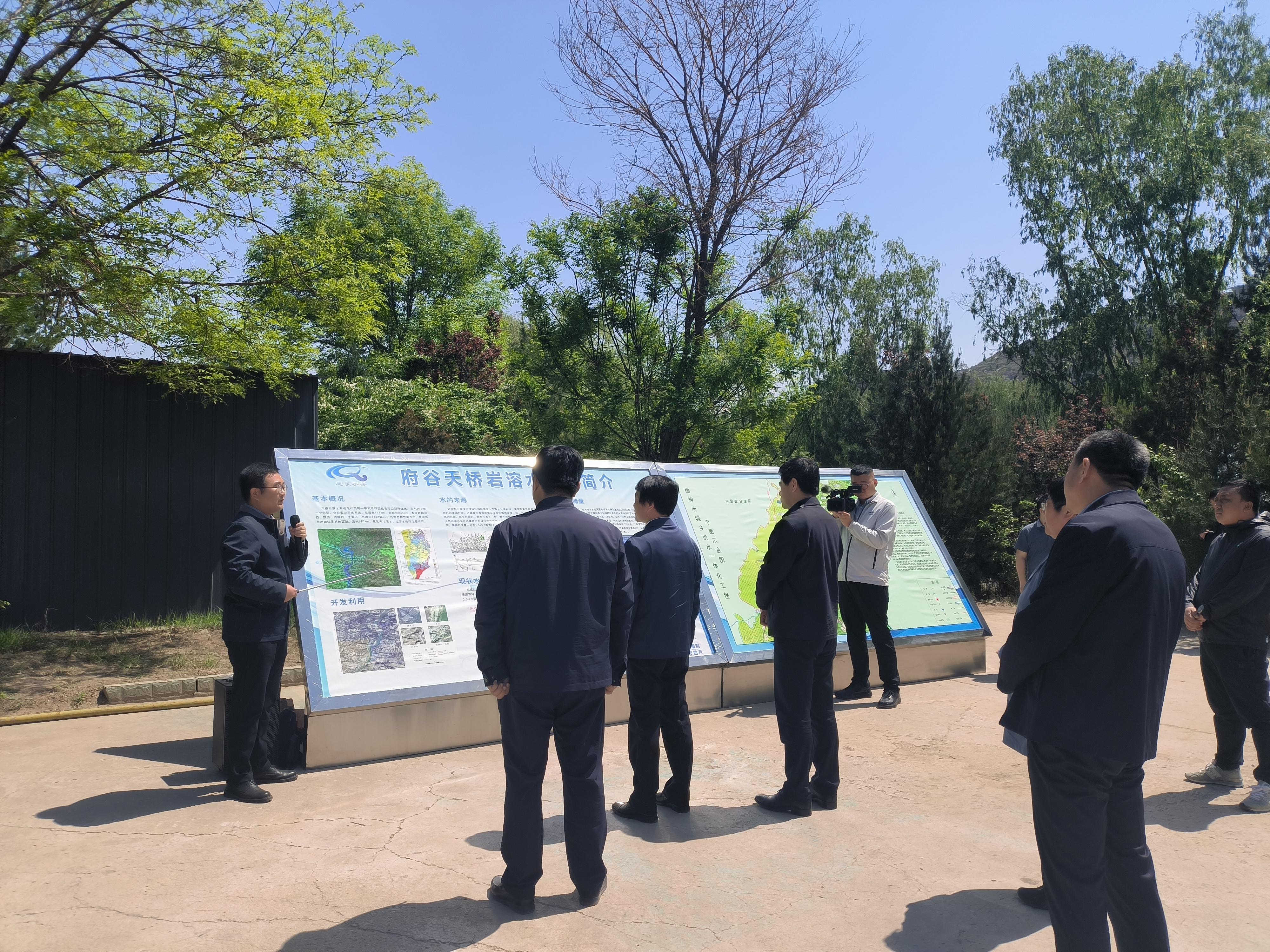 5月1日,榆林市市长张胜利带领相关部门负责人一行到府谷县天桥水源地调研黄河流域生态环境问题进行调研。陕西地矿九0八公司应邀对府谷县天桥岩溶水系统进行专题汇报。