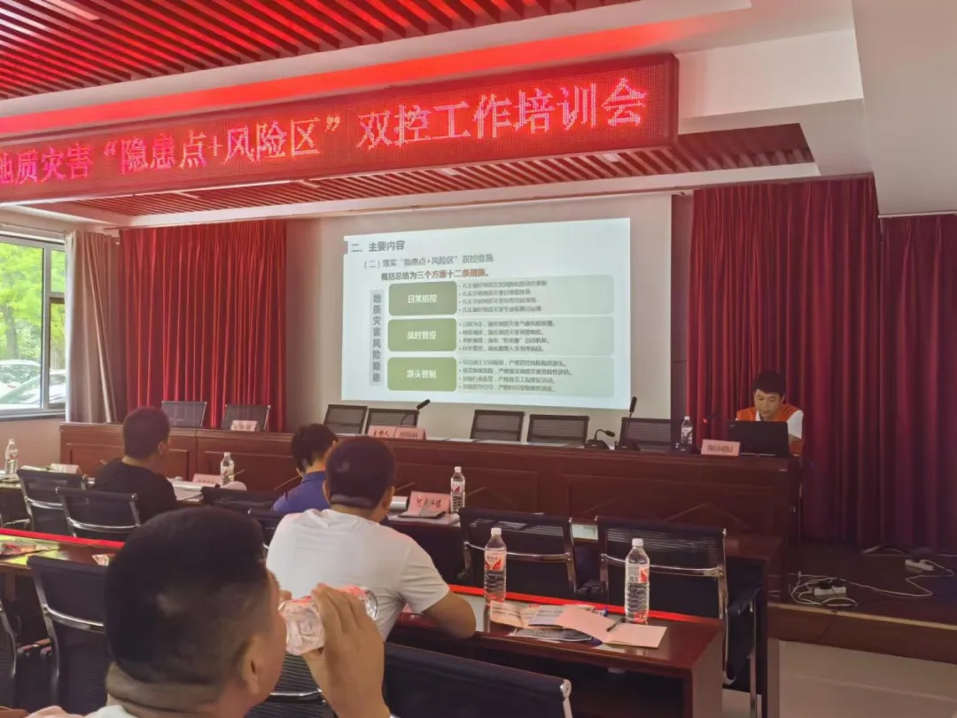 支队杜鹏同志,通过展示与分析典型案例,重点讲解宝塔区地质灾害类型与分布现状,分析地质灾害易发的原因,生动形象地普及防灾避险知识。同时针对“双控”工作,细致的解读相关政策,聚焦于各级防治责任人的日常工作职责以及具体的灾害防范措施组织了专题培训,旨在提升全员的风险防控与应急管理能力。