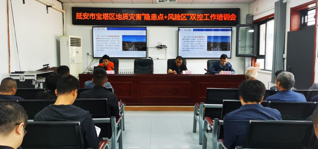 支队的技术骨干,以宝塔区地质灾害的类型与分布现状为基础,深入剖析了宝塔区地质灾害易发的原因,通过图片展示与播放动画等丰富形式,生动形象地向参会人员普及防灾避险知识。“双控”培训环节,逐级介绍各级防治责任人的工作职责以及具体的工作内容,旨在进一步提升宝塔区基层干部的风险防控与应急处置能力.