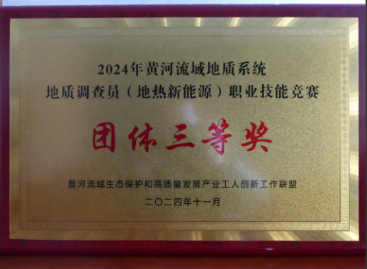 12月,九0八公司在黄河流域生态保护和高质量发展产业工人创新工作联盟主办的2024年黄河流域地质系统地质调查员(地热新能源)职业技能竞赛中荣获团体三等奖。展现了公司自红色血脉中传承的艰苦奋斗、自强不息的优良作风。