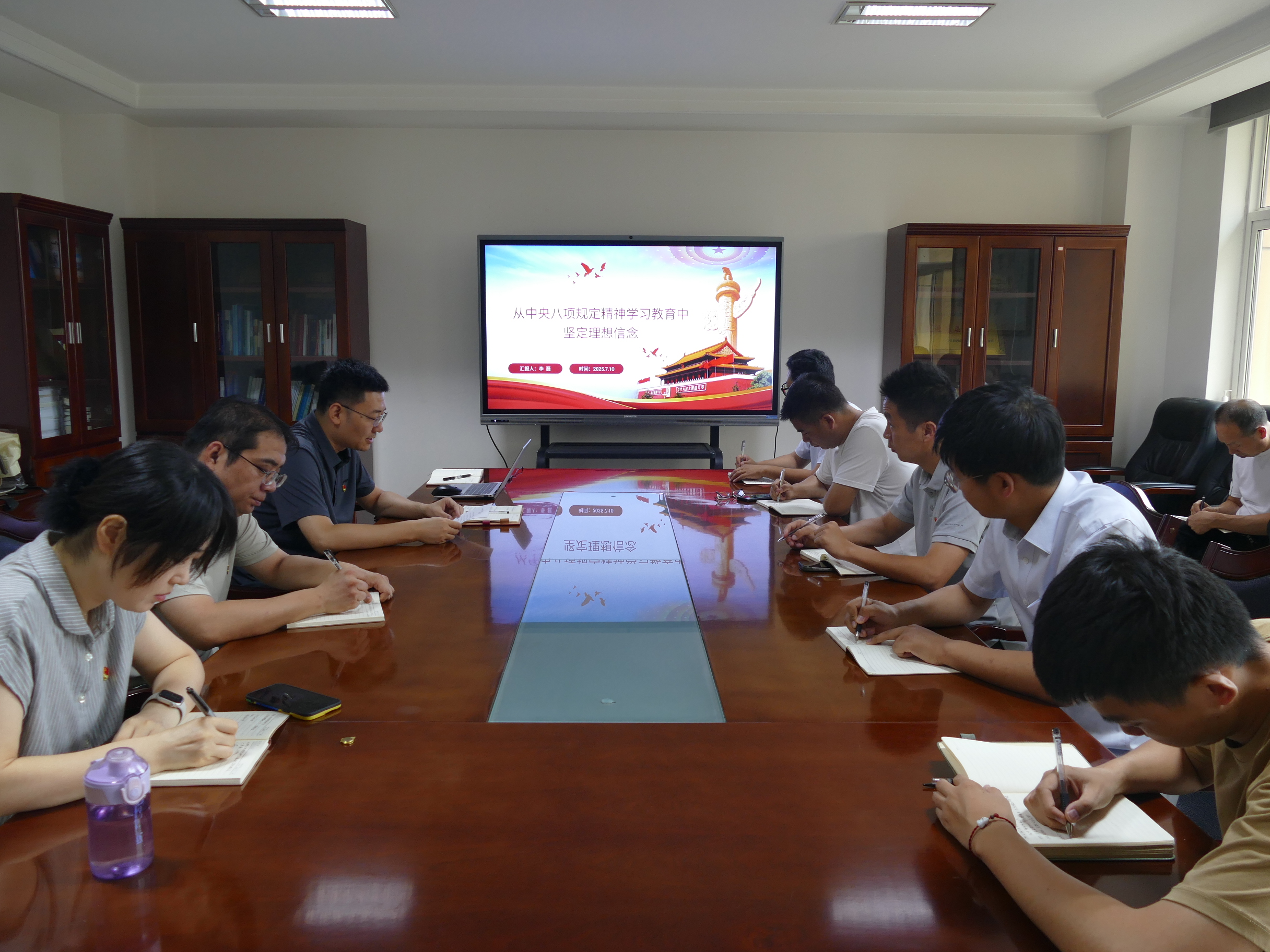 7月10日,陕西地矿九0八公司党委副书记、工会主席李磊在生产经营第三党支部讲授专题党课,支部和分管部门党员干部参加。